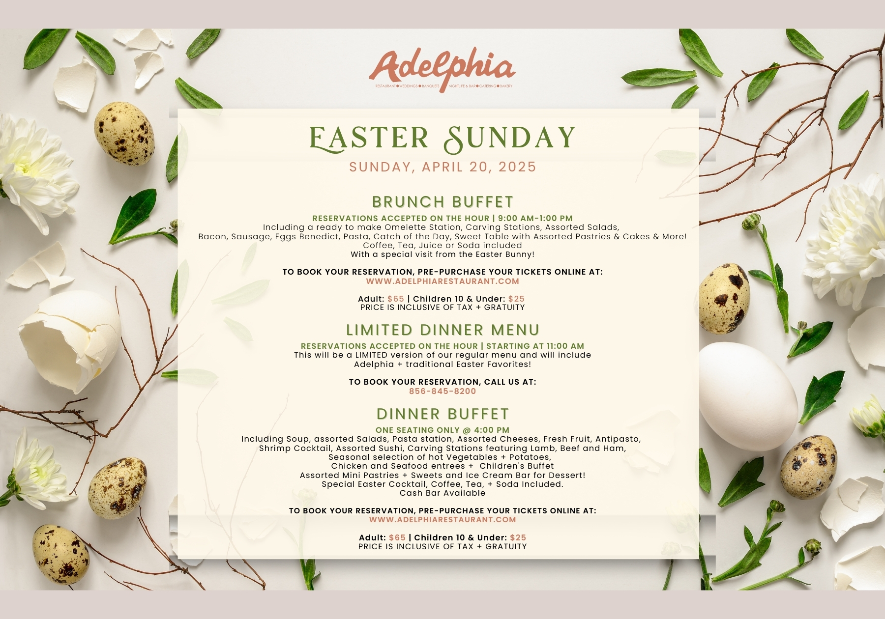 Please contact us at 856-845-8200 for dinner reservations off the menu.